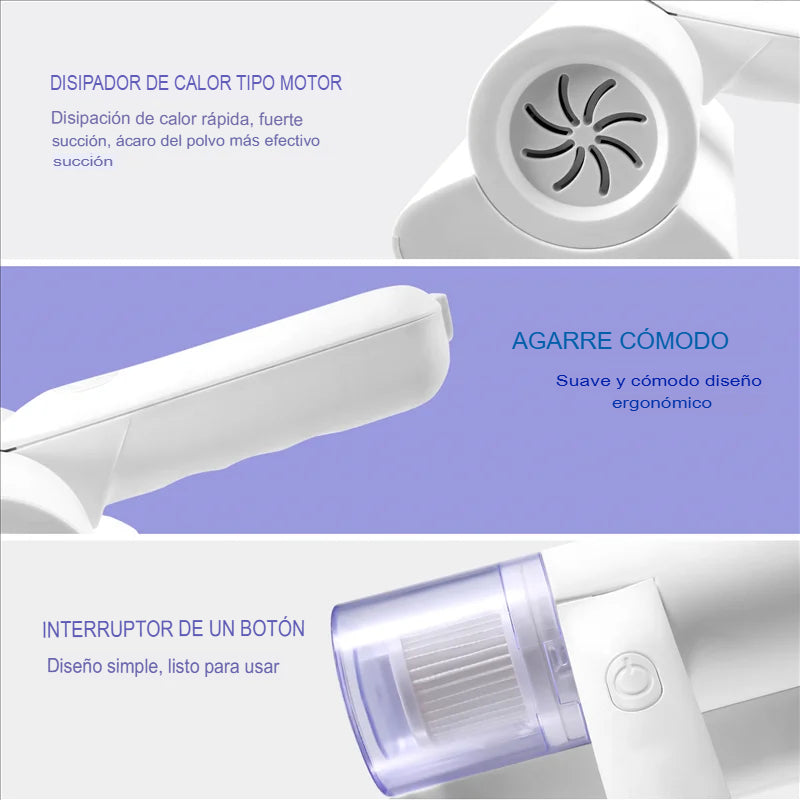 Respira tranquilo con nuestra aspiradora antiácaros, diseñada especialmente para eliminar ácaros, polvo fino, alérgenos y bacterias de colchones, sofás, alfombras y más. Gracias a su tecnología de succión profunda, filtro HEPA y luz UV-C desinfectante, logra una limpieza higiénica y completa, ideal para personas con alergias o sensibilidad al polvo.
